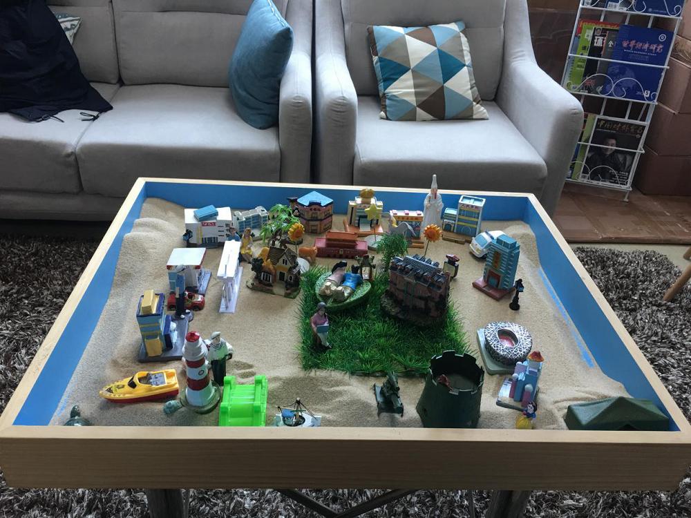 沙盘游戏,就是借助沙盘和各种沙具,使问题以立体形象的方式呈现。我们在建造这个沙盘世界时,能够身临其境的感觉、体验,反复检验内在的迷惑,并在这个动态过程中用沙具对生活再创造、演练,调适自己的情感、认知和行为,在沙盘中充分表达自我的诉求。