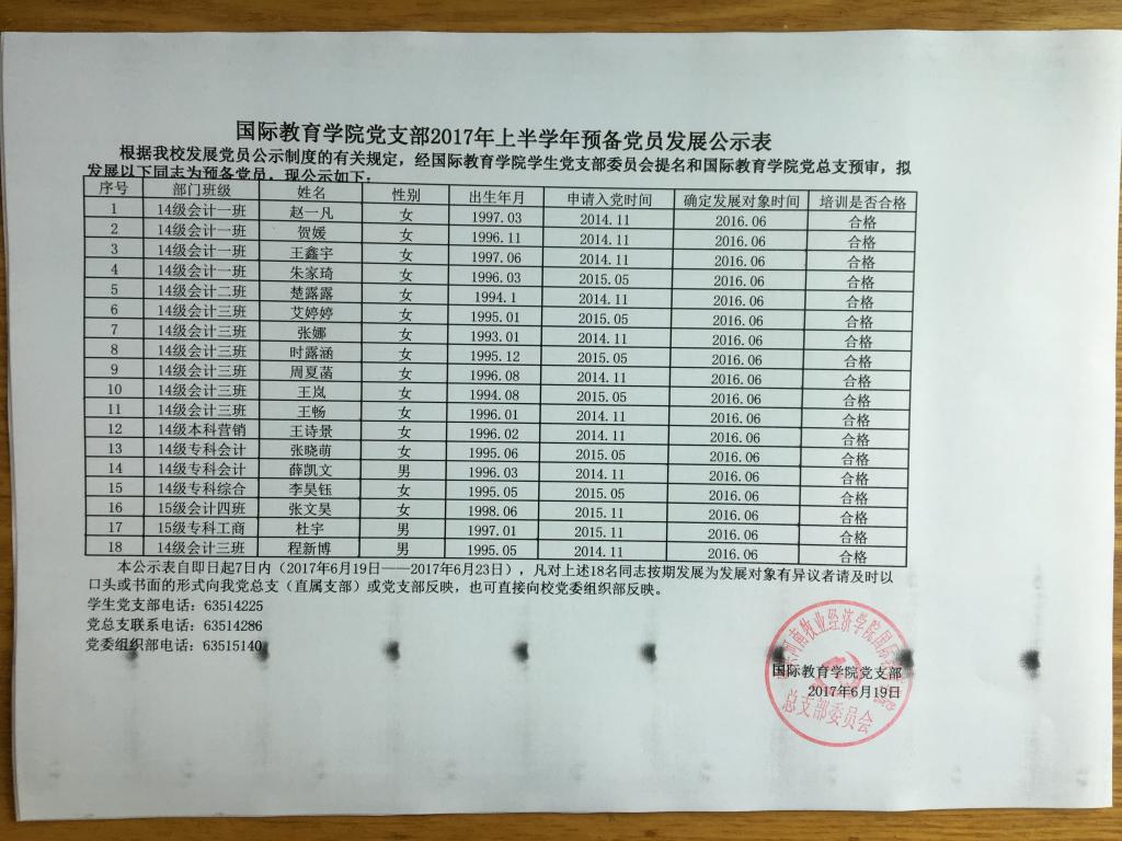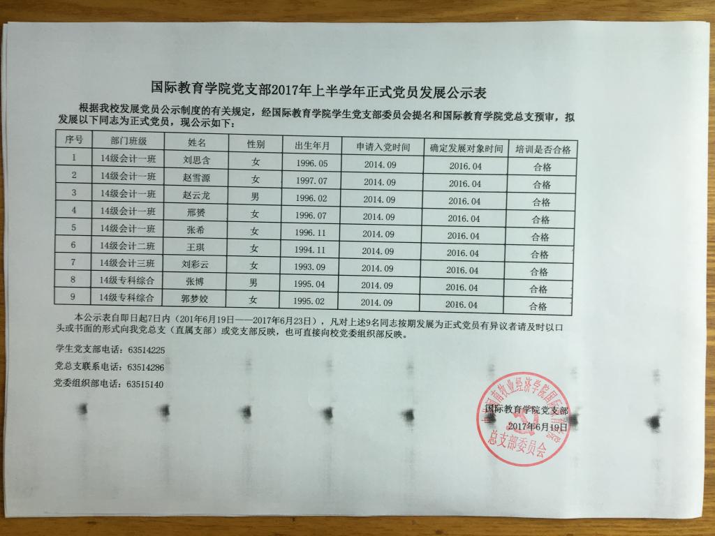 米兰milan官方网站关于刘思含等9位同志转以及拟发展赵一凡等18位同志为中共预备党员的公示