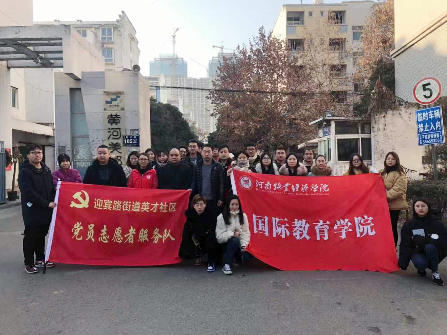 按照学校志愿服务工作整体安排,结合我院实际,学院党总支主动与惠济区迎宾路街道办事处英才社区结对开展志愿活动,根据社区工作需要和安排,学院充分发挥人力和智力优势,针对创建文明城市,积极开展创建文明社区宣传及社区卫生清理等志愿服务。