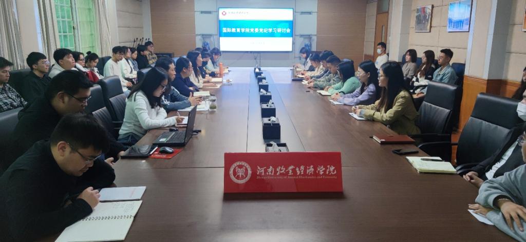 4月30日上午,国际教育学院在英才校区教学办公楼113会议室组织开展党纪学习教育读书班集体研讨会,深入交流学习成果,全面总结学习成效。学院全体教工党员、部分学生党员参加会议。会议由院党委副书记李江红主持。