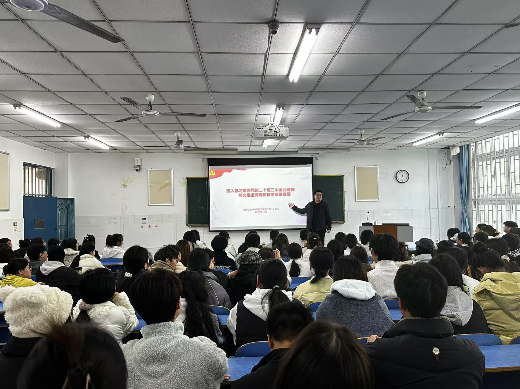 为深入学习贯彻党的二十届三中全会精神,推动全会精神落地见效,米兰milan官方网站于11月29日中午在E102教室召开“深入学习党的二十届三中全会精神,努力推进高等教育高质量发展”宣讲会,本次宣讲会由校党委学工部思政科科长王雪冰老师主讲。