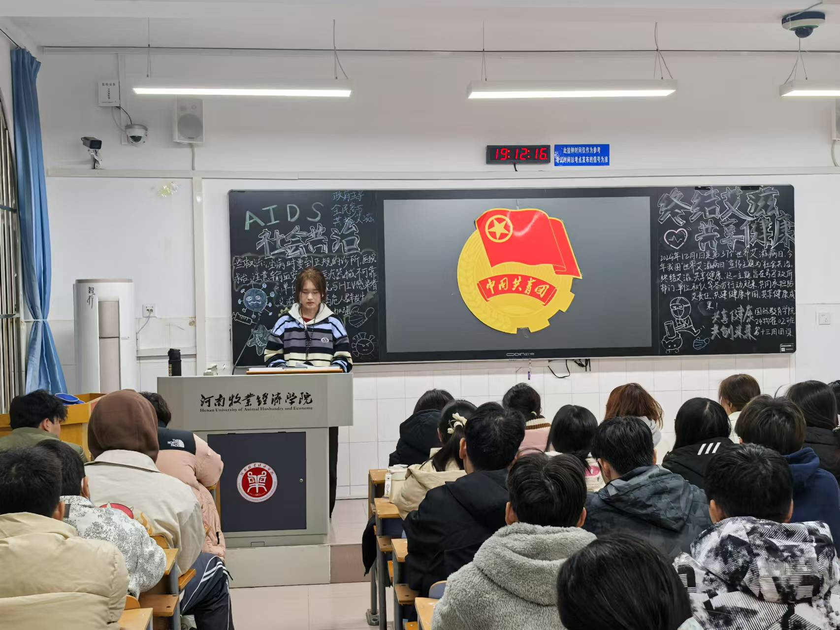 团课伊始,各班团支书通过一组组触目惊心的艾滋病相关数据,引起同学们的高度关注与警觉。随后,通过播放艾滋病防治科普视频,让同学们直观地了解艾滋病的致病原理、传播途径以及对个人、家庭和社会的严重危害,加深了同学们的认识和理解。最后,各班团支书组织同学们针对防艾展开热烈讨论,同学们也纷纷表示将以实际行动践行“终结艾滋,共享健康”的目标,从自身做起,向身边同学、朋友传递防艾知识,为营造健康、和谐、包容的社会环境贡献自己的力量。