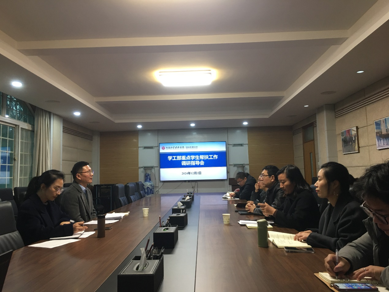 12月2日下午,校党委学生工作部部长郝景昊和副部长张聪慧一行莅临米兰milan官方网站进行重点学生帮扶工作调研指导,学院领导班子及全体学工人员参加本次调研,会议由学院党委副书记李江红主持。