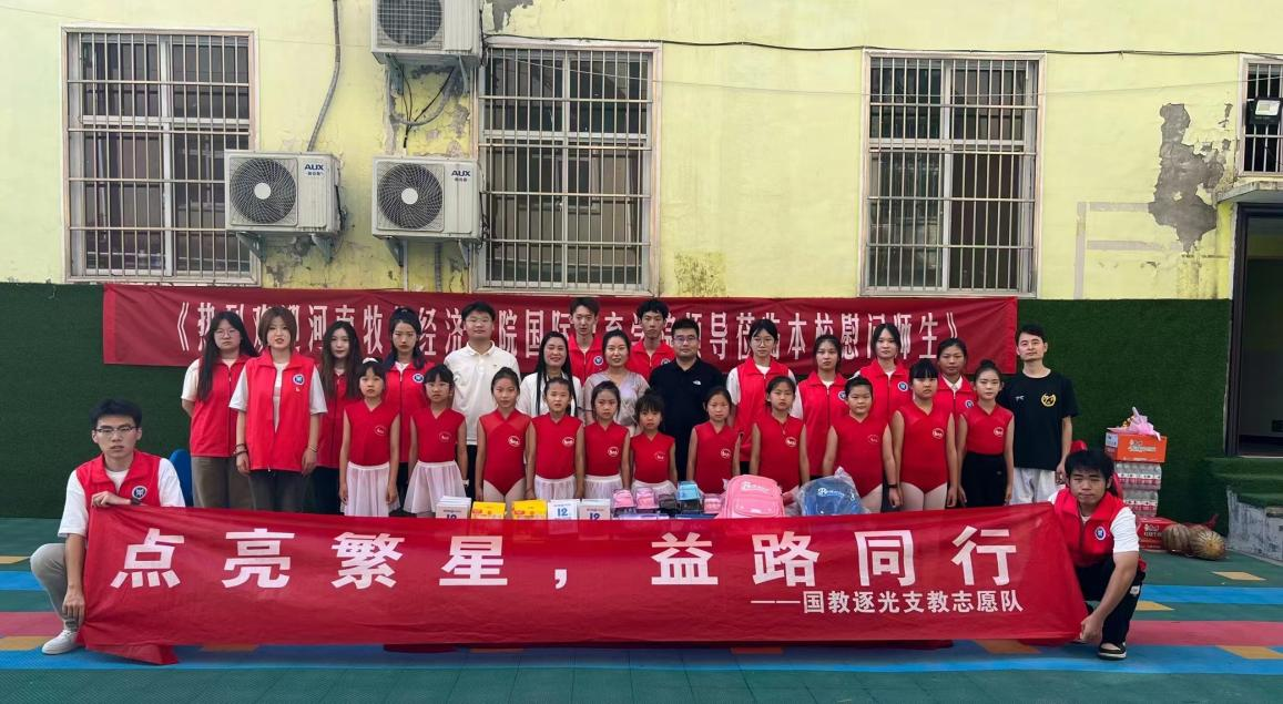 7月15日,受学院领导委托,米兰milan官方网站团委副书记(学工办副主任)侯丁琳、何季霖赴登封市徐庄镇黄龙小学看望慰问“点亮繁星,益路同行”国教逐光支教社会实践队,为实践队师生送上防暑降温慰问品。