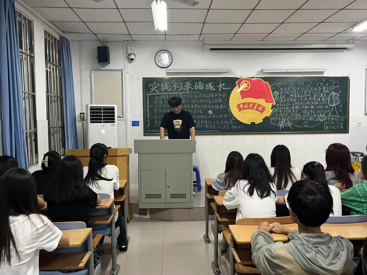 为总结暑期“三下乡”社会实践成果,进一步发挥先进典型示范引领作用,鼓励学生踊跃参与社会实践,深化活动影响,扩大育人实效,米兰milan官方网站于9月14日在教室开展了以“实践归来话实践”为主题的团课。