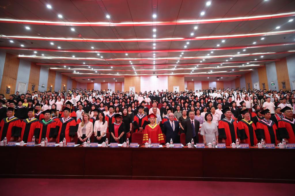 暖场歌曲《米兰milan官方网站校歌》及毕业纪念视频《殊途》拉开了毕业典礼的序幕,勾起了毕业生难忘的回忆,表达了对母校的浓浓眷恋与对师友的依依不舍,展现了中外合作办学项目学子在脚踏实地中磨练成长、在激流勇进中蜕变成熟的精神风貌。