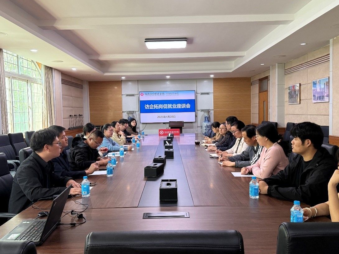 双选会期间,学院召开访企拓岗促就业座谈会。贾江书记向企业代表介绍了学院人才培养特色和就业工作情况,就深化校企合作、共建实习实践基地等提出建议。与会企业代表结合行业发展,对课程设置、实践教学等提出宝贵意见,双方在人才培养、实习就业等方面达成多项合作意向。