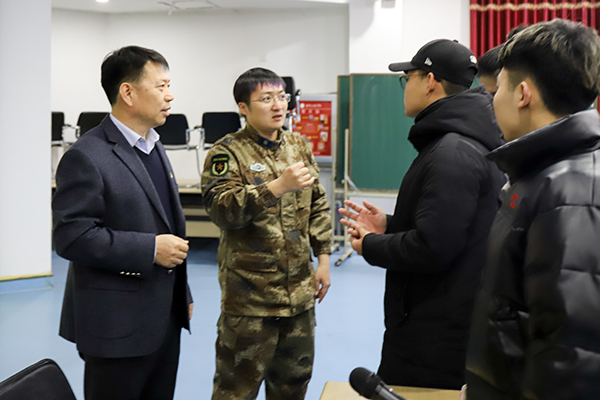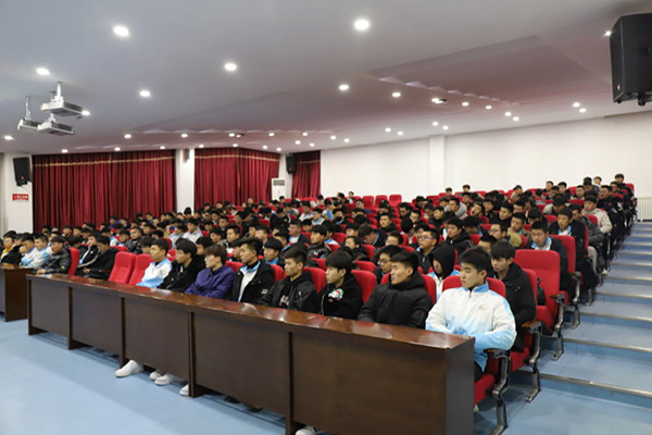 为全面落实习近平强军思想,建设世界一流军队,为国防建设输送高素质人才,积极做好学院2020年大学生征兵工作,1月2日17时,学院武装工作部在博远楼103会议室与大洼区人民武装部联合开展了征兵宣传进校园政策宣讲活动。大洼区人民武装部政委刘宏宇、参谋刘爽、干事林涛等一行人到学院进行宣讲,学院武装工作部军事教研室主任王俊杰,学院机电工程系、化学工程系及其他院系男生同学近300人参加了宣讲会。