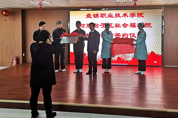 在热烈的气氛中,学院副院长张洪福与双台子区社会福利院党支部书记于素玲签署了合作意向书。最后,双台子区政府副区长翟月雷和beat365英国官方网站副院长张洪福共同揭牌,签约仪式圆满成功。
