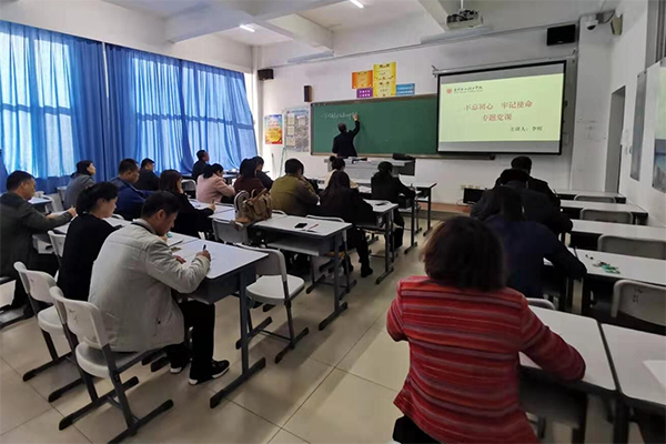 按照学院“不忘初心、牢记使命”主题教育工作实施方案的部署要求,传达学习贯彻党的十九届四中全会精神,11月4日13:30,学院党委委员、副院长李辉同志在博远楼113教室为化学工程系党支部、两中心党支部、科规财务联合党支部全体党员讲授了“不忘初心、牢记使命”专题党课。