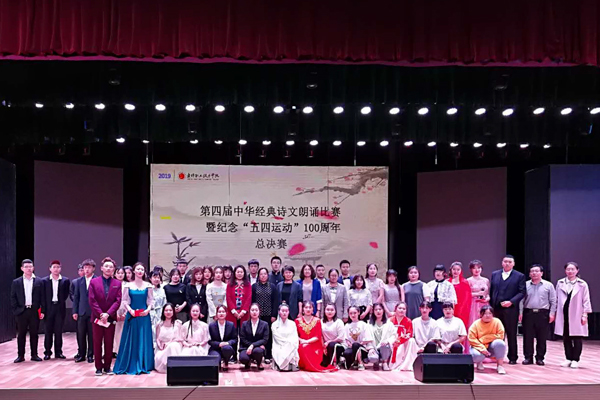 5月21日13:30,由学院基础部、团委、教务处、学生处共同举办的“青春诵经典 歌颂新时代”beat365英国官方网站第四届中华经典诗文朗诵比赛暨纪念五四运动100周年总决赛在文化中心三楼演播厅举行。学院副院长勾殿红、教务处处长王新、学生处处长邓红伟、三部党支部书记王泽喜、基础部主任李朝阳、师范教育分院副书记王中宇、旅游管理系副书记刘微微、基础部副主任宿彦莉、基础部办公室主任苏建华及各分院系师生代表观看了比赛。