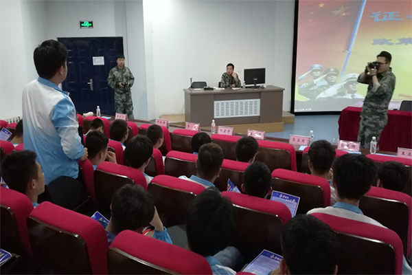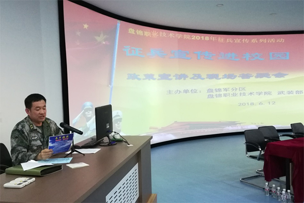 盘锦军分区参谋张文礼对在场大学生进行了征兵政策宣讲及政策答疑。