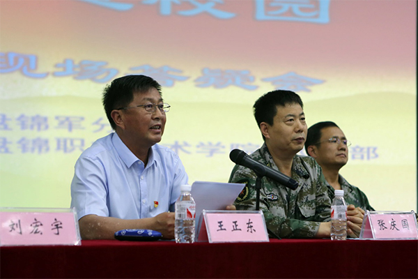学院党委书记王正东在讲话中首先感谢盘锦军分区首长亲临学院对大学生征兵工作进行动员,同时也感谢盘锦军分区、辽东湾新区、大洼区人武部对学院征兵工作的关心与支持。王书记说:中国人民从站起来,到富起来,到强起来都离不开中国人民解放军保家卫国,流血牺牲。王书记强调,学院的办学要全面落实党的教育方针,要加强国防教育,对大学生应征入伍给予坚决的支持。同时要求学院武装部、各部门,按照张司令员的要求,不折不扣的完成好今年的大学生征兵任务。王书记希望学院广大适龄大学生积极踊跃报名参军,携笔投身军营。
