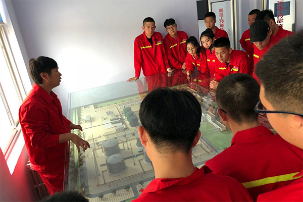 在参观和学习的过程中,该站王站长和赵队长分别给师生们介绍了油气储运集输工艺过程和石油储运有关的设备及工具现场应用,师生们参观了第二联合站的沙盘模型、技能考核场地和整个联合站的全部罐区。
