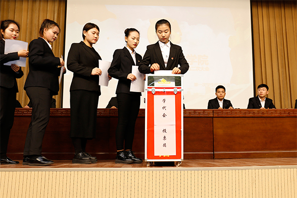 院学生会主席王泽森作了第一次学生代表大会工作报告,他对过去一年团委会、学生会及社联的工作进行全面总结,并确定了未来一年我院学生委员会工作的主要任务,表示我院学生委员会将会以“团结、服务、进取”为工作理念,不忘初心、牢记使命,坚定信念,锐意进取,团结全院学生,为把我院建成具有鲜明特色的一流高等职业院校而努力奋斗。
