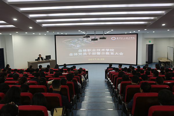 监察审计处副处长孟微向全体参会人员传达了盘委【2017】29号《中共盘锦市委关于盖林严重违纪案的通报》、盘委【2017】33号《中共盘锦市委关于在全市党员干部中开展系列警示教育活动的通知》以及盘职院委发【2017】39号《关于在全院党员干部中开展系列警示教育活动方案》等文件。随后,全体党员干部观看了《失守的防线》、《恨与悔》刘铁鹰、盖林违纪案件警示教育片。