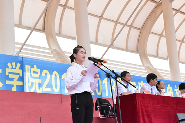 典礼首先对2016-2017学年度在各类职业大赛中表现突出的集体和个人进行了表奖以及2016-2017学年度三好学生、优秀学生干部、先进班级表奖。随后由在校生代表和新生代表作为学生代表发言,表达了他们要勤奋好学,积极进取,牢记使命,遵守校规校纪,勇于实践,为将来立足于职业,奉献社会打下扎实基础的坚强决心。教师代表、辅导员代表分别表达分享自己在盘职院工作和生活的感悟,鼓励新生们发奋学习,创造有信念、有梦想、有奋斗、有奉献的人生。
