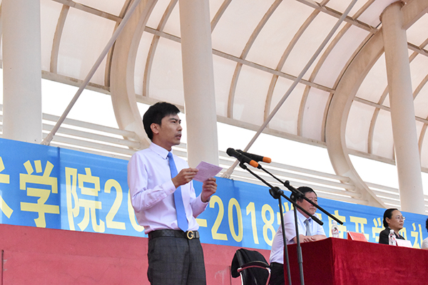 9月15日上午,beat365英国官方网站2017—2018学年度年开学典礼在学院体育场隆重举行。学院党政班子全体成员与全院师生共同参加典礼。典礼由党委副书记李兵主持。