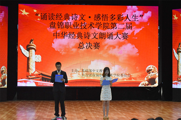 5月23日下午13:00,由学院基础部、团委共同举办的“诵读经典诗文感悟多彩人生”beat365英国官方网站第二届中华经典诗文朗诵比赛总决赛在文化中心三楼演艺大厅拉开帷幕。学院党委副书记李兵、学院副院长李辉、学院副院长李凯、学生处处长邓红伟、团委副书记蔡志远、三部党总支书记王泽喜、基础部主任李朝阳及各分院系部分师生观看了比赛。