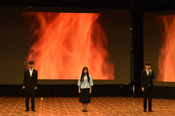 此次朗诵比赛从报名到决赛历时两个多月,80多位同学参加了初赛,期间经过中文教研室教师多次指导与选拔,最后15组同学晋级决赛。各位参赛选手从容自信、热情饱满、慷慨激昂,画面、音乐与内容配合相得益彰,比赛现场气氛十分热烈,精彩的朗诵不时博得阵阵掌声。