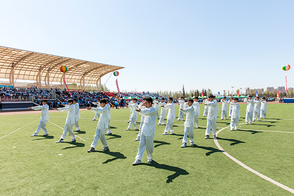 开幕式结束后,大型文体操演出在动感十足的学院花球啦啦操队表演中开始。姑娘们舞出了青春的活力,跳出了年轻的精彩,用健康阳光的美好形象诠释了运动精神。军体拳表演一声声口号响破天际,一招一式武出军人风;团体操表演红海滩,通过独特的创意,新颖的构思,丰富多彩的艺术形式,为全院师生呈上一场精彩的视觉盛宴……精彩纷呈的表演展现出我院学子朝气蓬勃和健康自信的精神状态。
