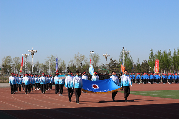 上午8时40分,学院党政领导和师生齐聚绿茵体育场。由千余名学生组成的国旗队、校旗队、裁判员方队、学院校卫队以及14支学生和教工组成的检阅方队,伴随着激昂的运动员进行曲,精神抖擞、整齐划一地依次走过主席台进行检阅。他们整齐的动作、矫健的身姿、响彻云霄的口号充分展示了盘锦职院人朝气蓬勃、团结一心、健康向上、斗志昂扬的崭新精神风貌。