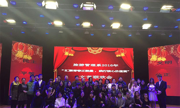联欢会伊始,系张昭猛书记致辞,他对本次联欢会的主题进行了高度概括,总结了旅游管理系过去一年在各方面所取得的丰硕成果,并表达了对全系师生的新年祝福和期望。随后,联欢会在动感的舞蹈中拉开了序幕。深情的歌曲、动感的舞蹈、幽默的小品、优美的吉他、高雅的沙画等一个个节目错落有致的交织在一起,此外还有游戏环节同学们的精彩互动,高潮层出不穷。主持人时而妙语连珠,时而幽默风趣,带动了整个联欢会的气氛。欢声笑语,载歌载舞,相聚的时刻总是短暂的,我们全体师生共同度过了难忘的时刻。最后,晚会在学生会带来的《相亲相爱》的优美歌声中落下帷幕。
