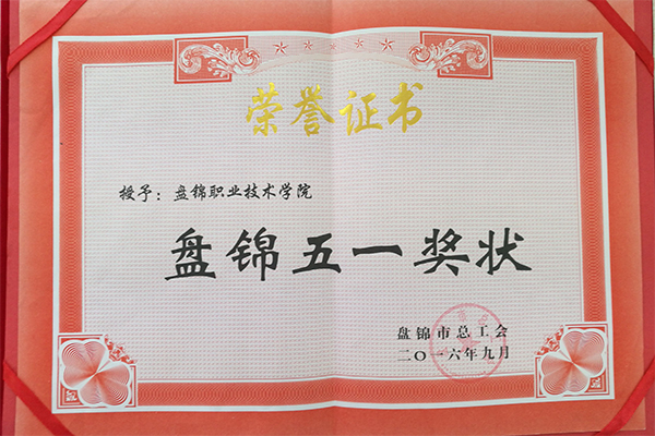 近日,学院被市总工会授予教育系统“盘锦五一奖状”称号,以表彰我院在市教育事业发展中作出的积极贡献。