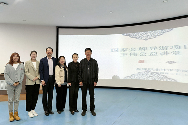 王伟会长先以其高级导游的精彩讲解向同学们介绍了盘锦,并通过互动拉近了与同学们之间的距离。讲座过程中,王伟会长主要从导游所应该具备的素质和能力入手,结合国家政策和文件,以及多个导游带团的实际案例,向同学们讲述了一位好导游应该具备哪些政治、文化和业务素养和能力,使同学们受益匪浅。