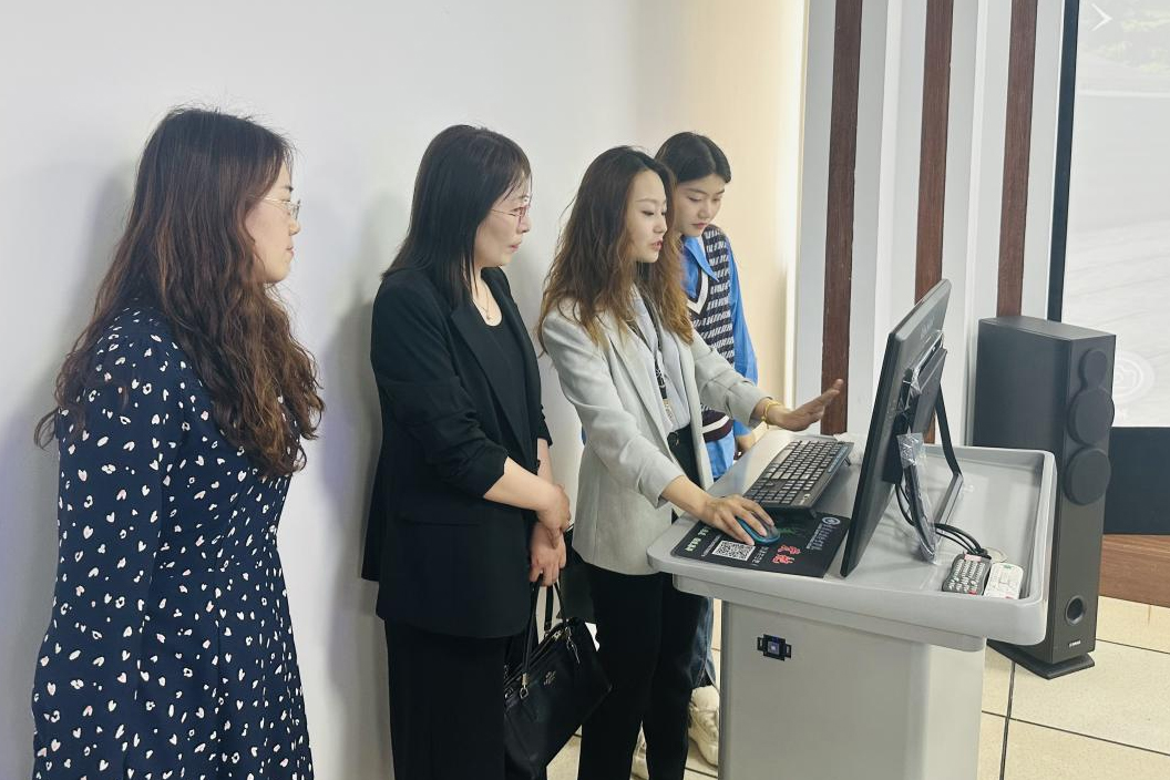 随后,在马克思主义学院班子成员的带领下,学习考察小组先后参观了思政课虚拟仿真实训基地、大学生心理健康中心、大学生易班发展中心等场所,亲身体验思政课VR实训设备,浏览百年党史纪念馆、红色教育基地纪念馆等数字教学资源,并在现场就实训基地建设与运营等问题进行了深入的交流。