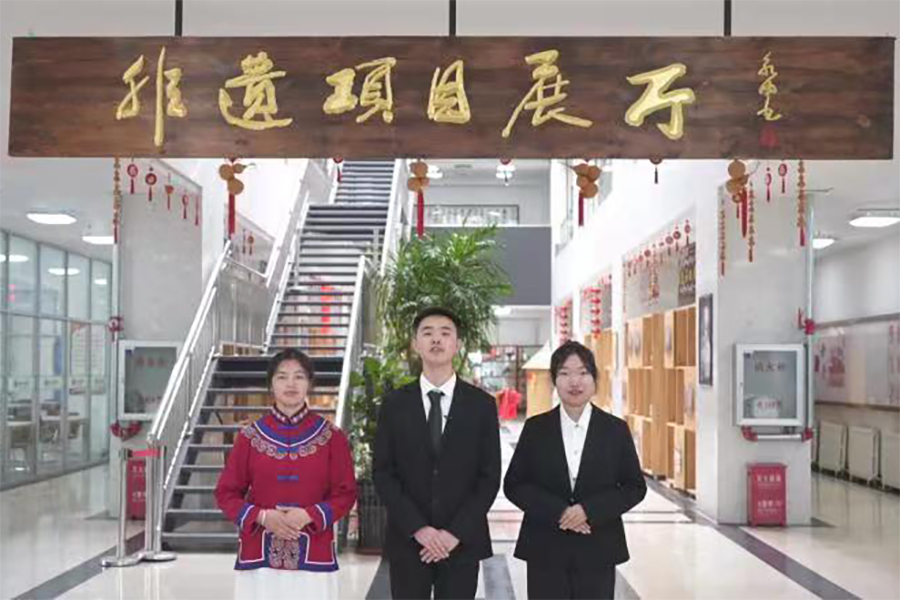 李雅静、夏英华老师指导、2022级学生梁德政、高阿牛、郞晗完成的参赛作品《传承非遗文化 提升民族自信》。