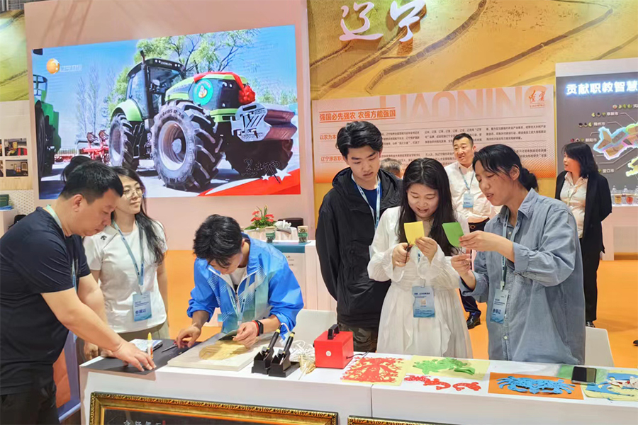 2023年5月14日,beat365官网学前教育专业差异化培养教学成果“非遗芦苇画”“非遗剪纸”入选在山东潍坊举行的全国职业教育展。辽宁省教育厅厅长王庆东莅临现场指导。