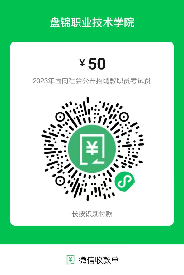 本次招聘考试费每人50元,请报名审核通过人员扫描下方小程序码缴费,扫描进入后须按要求完善考生姓名、所报岗位名称及联系电话信息后确认付款。