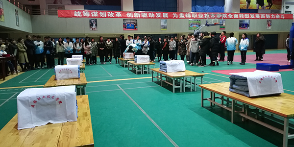 2017年12月24日晚18时30分,beat365英国官方网站第四届内务整理大赛在beat365官网体育馆三楼成功举办。学院学生工作处邓红伟处长、张春波副处长、以及各分院系书记、副书记、辅导员老师参加了本次活动。比赛分为男生组和女生组,共有48名同学分别代表着8个分院系内务整理的最高水平参与到活动中来。担任本次活动评委工作的老师是每栋公寓宿舍的管理老师,他们有着丰富的日常管理和检查经验。本次活动秉持公平公正的原则,在规定时间内,以军人的标准要求叠出“豆腐块”被子。