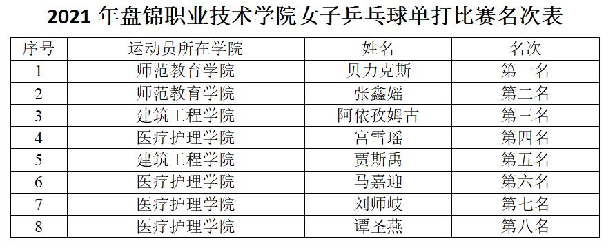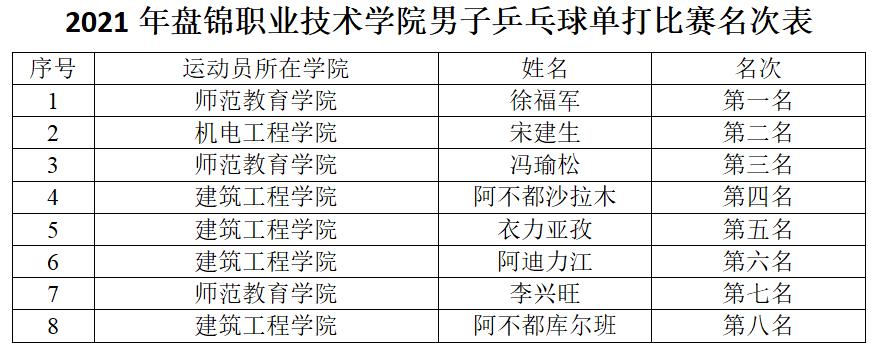 共有来自8个学院的102名同学参与了本次比赛,通过切磋球技、以球会友、共享为期四天的乒乓球运动之乐。比赛过程中各参赛选手精神专注、奋力拼搏,充分展示了良好的精神状态和竞技水平。本次比赛采取三局两胜赛制,经过共248场的激烈角逐,最终决出男女前八强,并将以八强队员为班底组建校乒乓球队,参加盘锦市万人乒乓球大学组比赛。