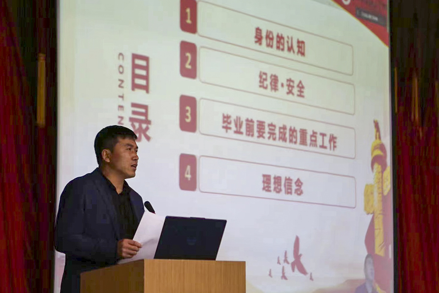 接下来,建筑工程学院党支部副书记孙义明围绕身份认知、实习纪律与安全、毕业前须完成的重点任务、理想信念等方面做了动员讲话,并对就业材料提交作了详细的讲解,鼓励同学们以饱满的热情和良好的表现完成实习任务。