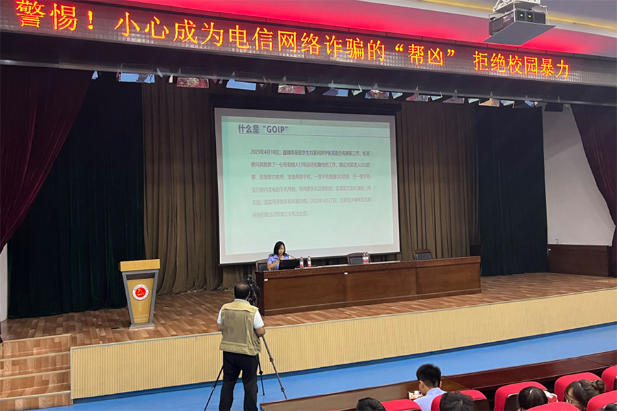 张警官结合辖区内近年来发生的真实案例,针对“网络刷单”“电话诈骗”“网络贷款”“跑分”等各类电信网络诈骗手段进行了详细讲解。同时,他告诫同学们要加强个人信息保护,如发现可疑情况要立即报警,不要出租、泄露个人信息,以免被不法分子利用。