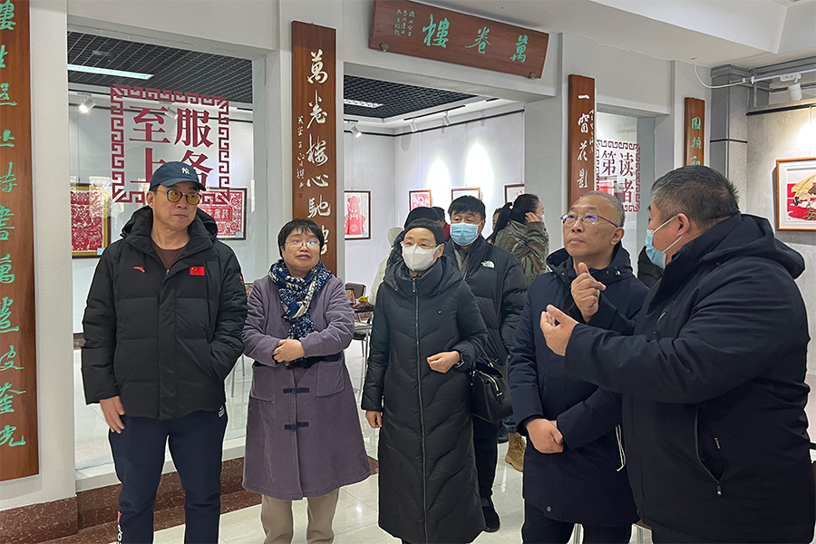 2023年12月19日,主题为“匠心技能成才 非遗传承有我”的获奖作品展在盘锦市图书馆盛大开幕,吸引了许多文化界、教育界的领导和嘉宾莅临参观。参加此次展览活动的领导有盘锦市文学艺术界联合会副主席曲子清、盘锦市文化旅游和广播电视局副局长陈建军,beat365英国官方网站副校长李辉,盘锦市文化体育旅游发展促进中心副主任、盘锦市民间文艺家协会副主席张明,盘锦市图书馆馆长姜洁。莅临现场的还有芦苇画非遗传承人周航、剪纸非遗传承人施德祥以及四所学校的领导、老师和同学们共同观展。