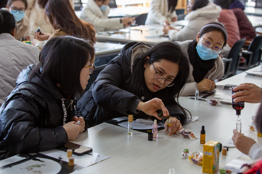 3月8日上午,在图书馆活动室,“三月芳菲、灼灼韶华”DIY精油香水制作活动如期开展,有将近百位女教职工参加了活动,着实丰富了多姿多彩的校园文化生活。同时,学校“送美食”“送温暖”等活动有序推进。