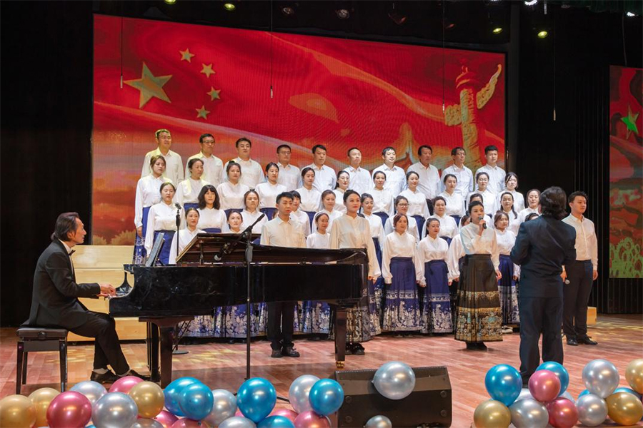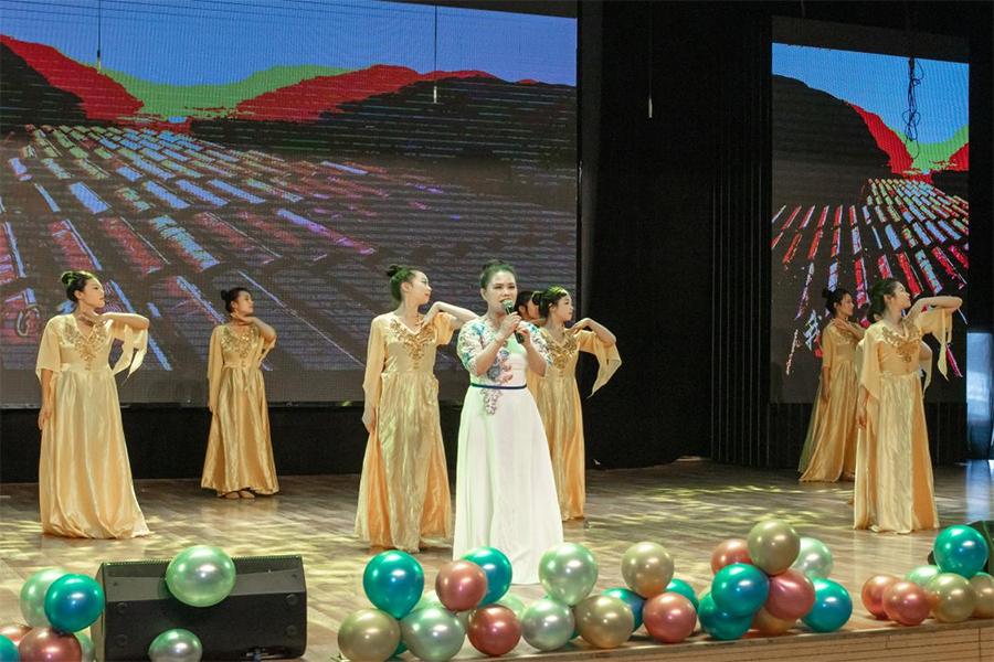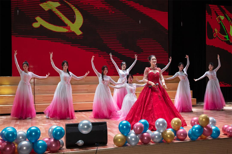 来自学校基层分工会选送的15个优秀节目在热烈的现场氛围中依次登场。整场演出汇集了歌伴舞、诗朗诵、独唱、合唱等艺术形式,精彩纷呈、高潮迭起,有歌颂伟大祖国繁荣富强的歌伴舞《我们的中国梦》,有振奋人心凝聚力量的大合唱《红旗飘飘》,有赞扬家乡盘锦的女声独唱《红海滩》,有坚定信念的配乐诗朗诵《信仰的力量》,有活力四射的青年教师歌伴舞《我们都是追梦人》,有大气磅礴的钢琴独奏《保卫黄河》,演出在教工合唱团的《奉献》《我们的新时代》歌声中落下帷幕。