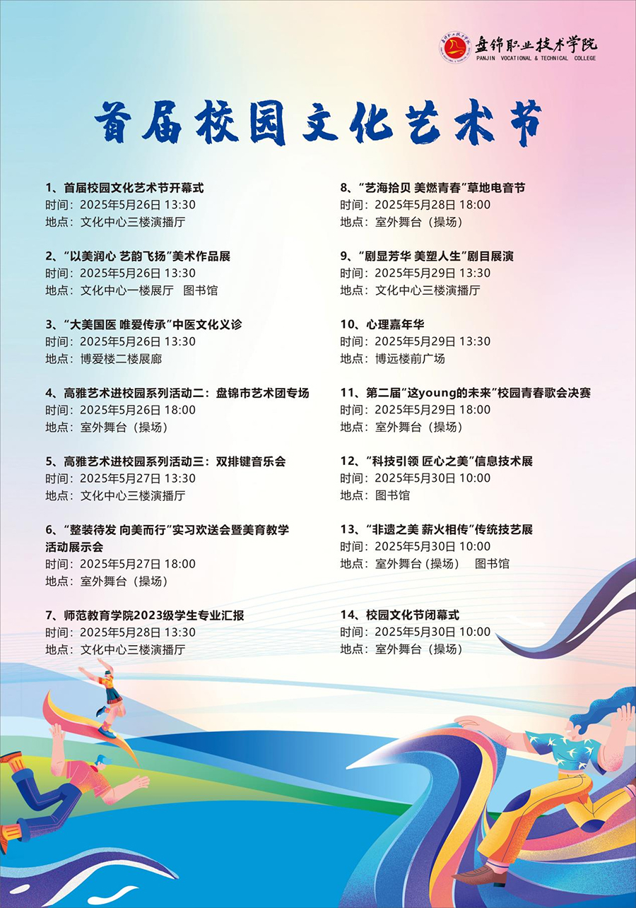 为全面贯彻党的教育方针,落实立德树人根本任务,引领学生树立正确的审美观念、陶冶高尚的道德情操、塑造美好心灵,弘扬中华美育精神,以美育人、以美化人、以美培人,丰富校园文化生活,培育德智体美劳全面发展的社会主义建设者和接班人,beat365官网将于2025年5月26日至30日面向全校师生举办beat365英国官方网站首届校园文化艺术节。本次文化艺术节涵盖文艺演出、艺术展览、非遗展示、科技展览、医疗义诊等多种类活动,将为全校师生呈现精彩纷呈的艺术盛宴。