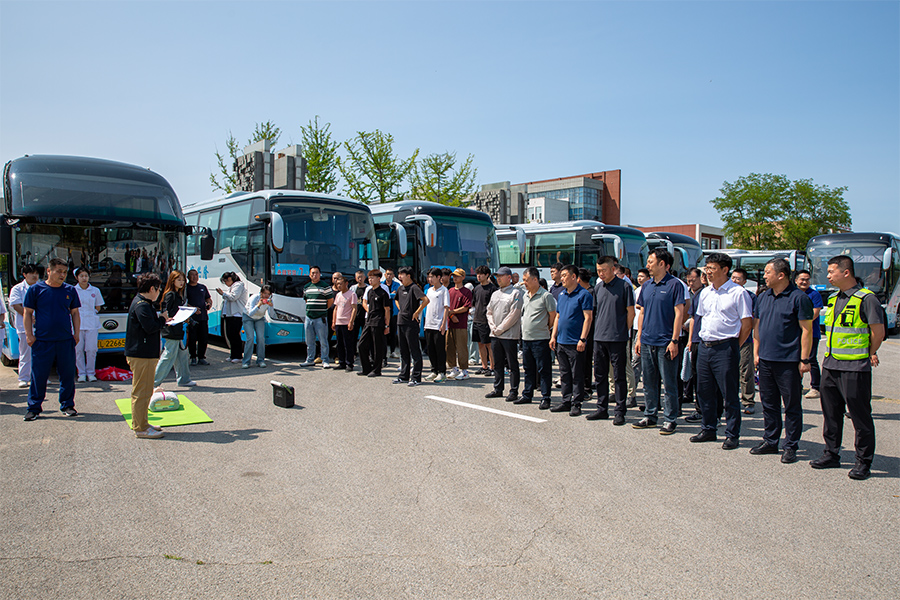 以通勤车执行接送任务行驶途中,车辆后方发动机舱突然起火冒烟为模拟场景,从乘车前关键提醒、车辆逃生路线、特殊情况应对及逃生后安全措施处理、车上急救包等方面进行详细讲解,并演示了车门应急开关的使用方法、应急窗及逃生门的正确开启方式、安全锤及灭火器的具体位置和操作方法。
