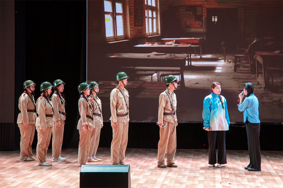 1名思政课教师(苗瑀格)和2名辅导员教师(姜宇航、宋尧)主动走上舞台,以“剧中人”身份与学生深情演绎作品。他们将深邃理论转化为鲜活故事,让抽象概念具象为动人场景。师生同台献艺、以剧传道,将一堂堂带有“艺术味”的思政课搬上舞台。这种“师生共演、艺理融合”的全新尝试,不仅为作品注入思想深度,更搭建起心灵对话的桥梁,使思政教育在情感共鸣中实现价值引领。