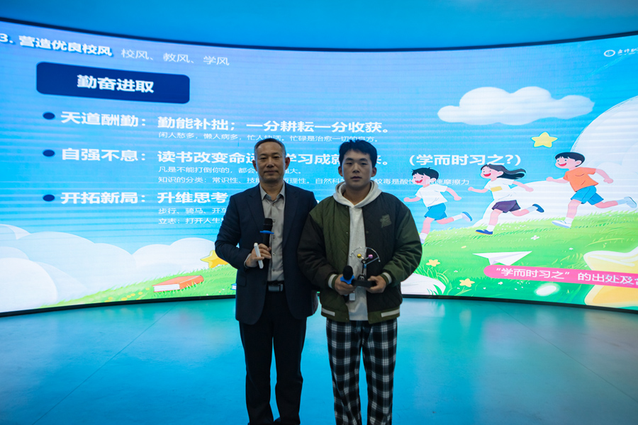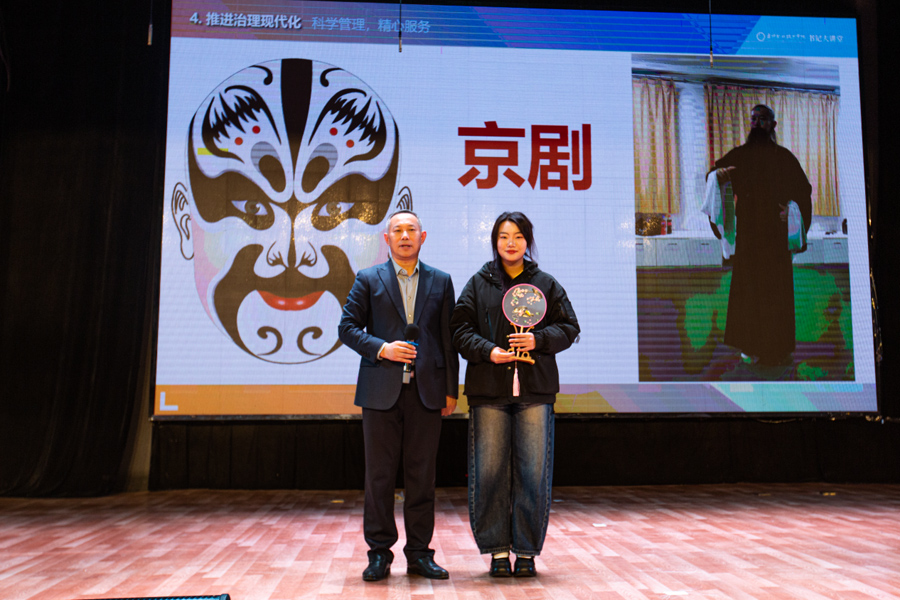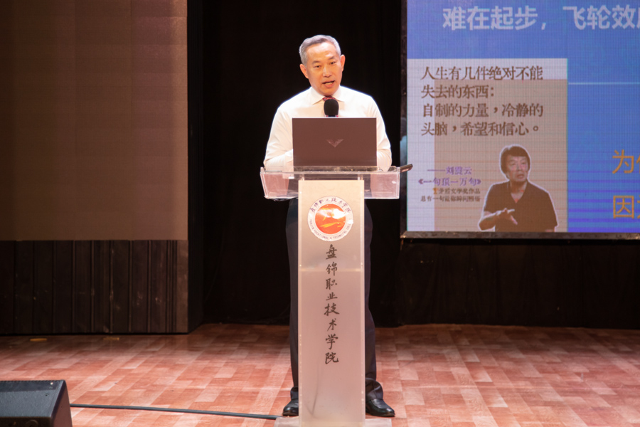 王首中书记以深厚情怀与育人智慧,在新生初入大学之际,送上了一堂堂有温度、有深度、有高度的大思政课,引导学生珍惜青春、不负韶华,以实际行动书写无悔大学时光。专题讲座围绕站在新起点的思考、建设百年校园、营造良好校风、推行现代化治理、倾力全方位成长等五个方面展开。讲座现场气氛热烈,他以“如果你为错过了太阳而懊悔,那么请珍惜当下的月亮”等富有哲理的话语开场,鼓励新生树立积极心态,摒弃迷茫与焦虑,在心中“种下太阳”,从容扎根、努力生长。通过营造书香校园、构建阳光校园、打造智慧校园、创建平安校园、塑造美丽校园等路径探索建设百年校园,实现师生齐努力、校园更美好的愿景目标。围绕如何营造优良校风,他结合自身经历与人生体会,从严谨务实、勤奋进取、文明健康、遵纪守法、公平正义、善良诚信、风清气正、开放开明等方面,生动阐释“校风就像气候,春风送暖,百花盛开”,勉励师生“用生命影响生命”,共同营造温暖向上、富有幸福感的校园氛围。在推进治理现代化方面,详细介绍“三个一切”——“一切为了学生的健康成长、一切为了教职员工的幸福工作、一切为了盘锦职院的高质量发展”,并分享了“关爱行动”“晚自习革命”“百团大战”等一系列创新举措,号召全校教师用教育家精神办教育,用系统思维谋划工作、用法治思维进行治理、用管理思维取得效能、用人本思维带好队伍、用修行思维抓好作风、用教育家思维不断改善、遵循教育的本质和规律,充分体现学校以生为本、科学管理、精心服务的坚定决心。如何倾力学生全方位成长方面,他结合beat365官网“涵养优品质、习得强技能、养成好习惯、保持健身心”的培养目标,深刻诠释“五育并举”的育人理念,强调“知识是基础,技能是力量,良知是方向”,引导学生注重品格锤炼与全面发展。讲座中穿插有奖问答、才艺展示等互动环节,学生的热情参与将现场气氛推向一个又一个的高潮。他本人更是亲自展示京剧片段而赢得阵阵掌声,让在场师生深切感受到中华优秀传统文化的魅力。