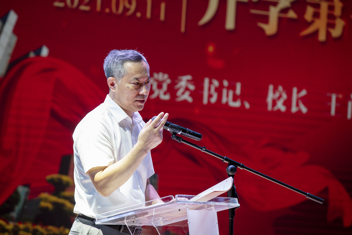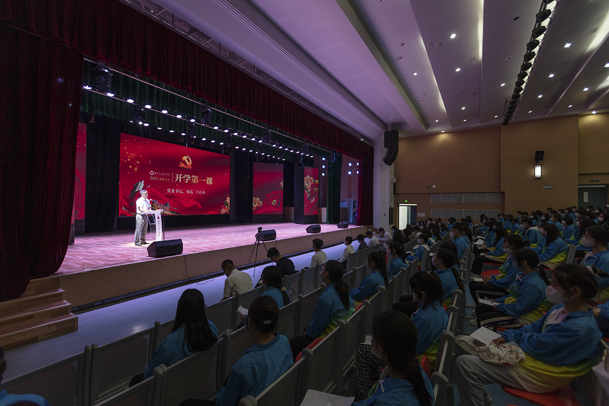 9月14日,beat365英国官方网站举行2021级新生开学第一课。现场600余名师生齐聚文化中心聆听学校党委书记、校长王首中开学第一课,开启求学新历程。