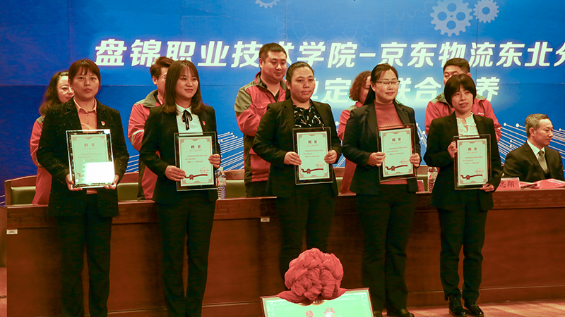 京东物流东北分公司亚一园区仓储总监郑忠翔致辞,他表示京东物流将把“京东物流班”作为公司培训体系的重要组成部分,尽可能地将京东物流的企业文化和各类专业知识传播给我们每一个学员,为学生提供优良的实训实习场地,以及畅通的绿色就业通道,共同把我们的合作做实、做强、做大,实现企业、学校和学生的三方共赢。