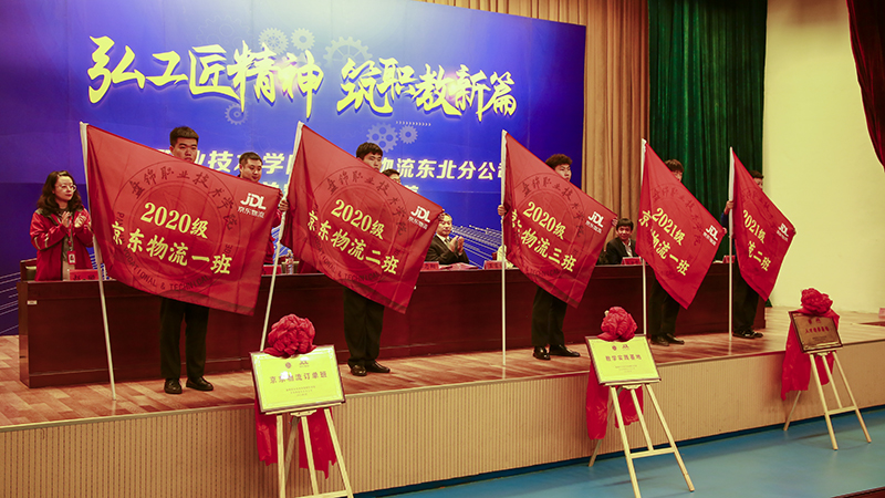仪式由物流管理教研室主任高飞老师主持。学校党委书记、校长王首中致辞。他表示,京东物流集团是有社会使命感的企业,希望京东物流东北分公司对我们的学生一如既往地关心、关爱,严格管理,让孩子们在安全、健康、舒心的环境中工作。同时,希望订单班的同学们一要珍惜这次难得的机遇,通过学校与京东的合作培养,从理论和实践的结合上学到更多知识和技能,德技双修。要严格遵守学校、企业的各项规章制度,讲文明、守纪律、刻苦学习、努力工作,为母校争光。要在奋斗中求发展,做一个高素质,高技能的技术人才。最后他祝愿同学们生活快乐、学业有成,争取成为企业优秀员工,也祝愿京东物流集团事业蓬勃兴旺,beat365官网愿与京东物流集团携手并行。