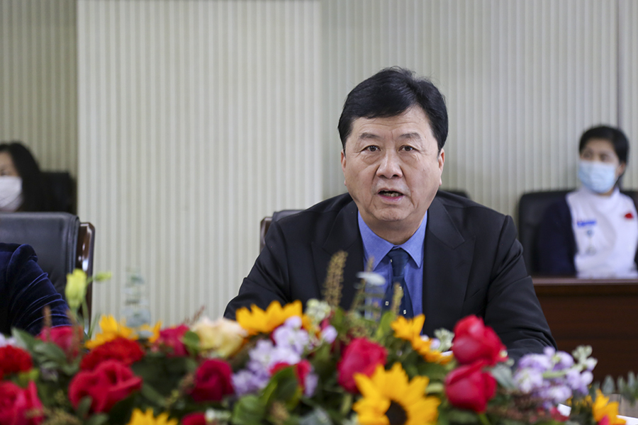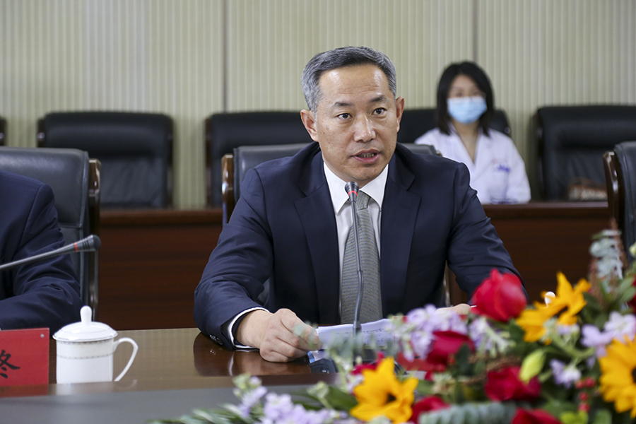 中心医院院长沈晓速介绍了医院的发展现状和“十四五”规划思路。他表示,希望医院与学校今后在教学实践、学术交流、人才培养等方面充分合作,着力探索校院合作的新领域、新途径,不断提高医院师资力量和科研能力,加强医教深度融合,最终实现共赢。