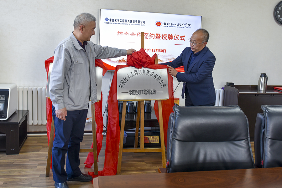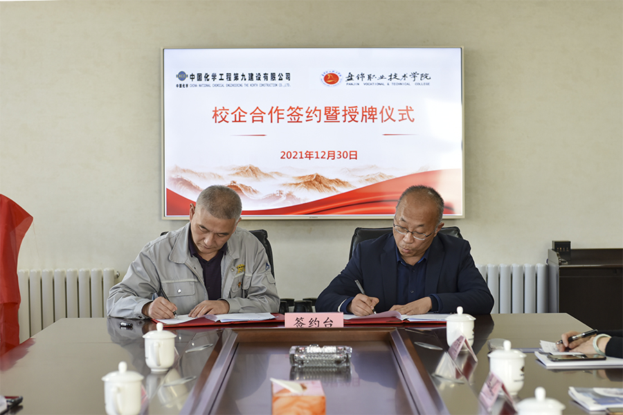 12月30日,beat365官网与中国化学工程第九建设有限公司(以下简称九化建)校企合作签约暨揭牌仪式在九化建会议室举行。