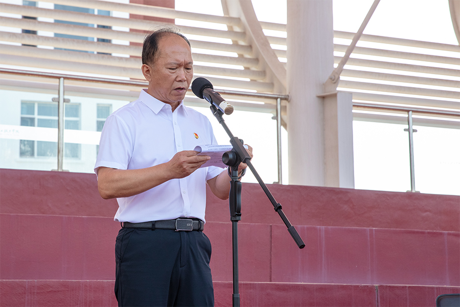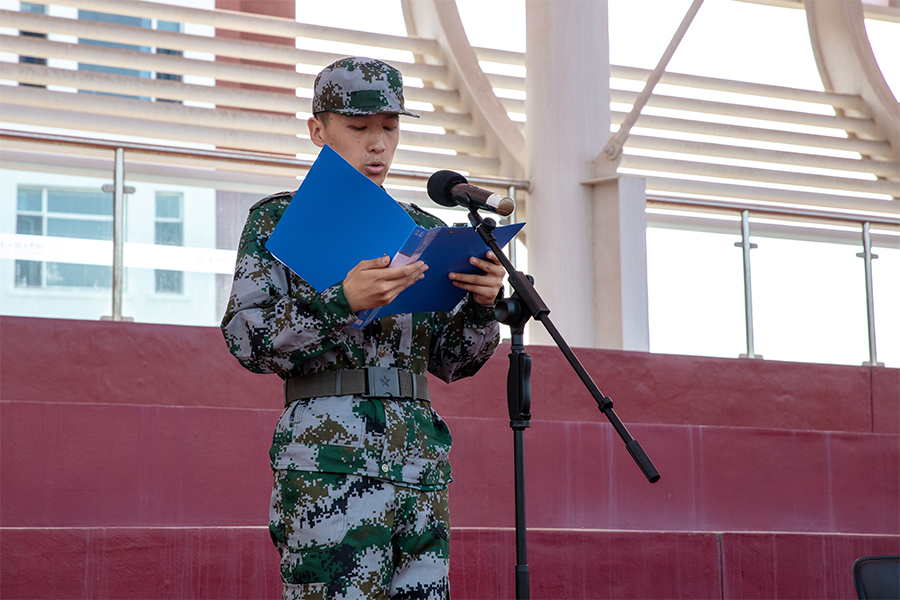 机电工程学院学生姜英慧代表2023级全体参训学生发言并带领全体参训学生宣誓。他表达了对军训的期待和决心,表示会坚决听从指挥,服从命令,发扬革命前辈们吃苦耐劳的精神,不怕苦不怕累,认真完成每一次训练,强身健体,磨炼意志,争做优秀学员。